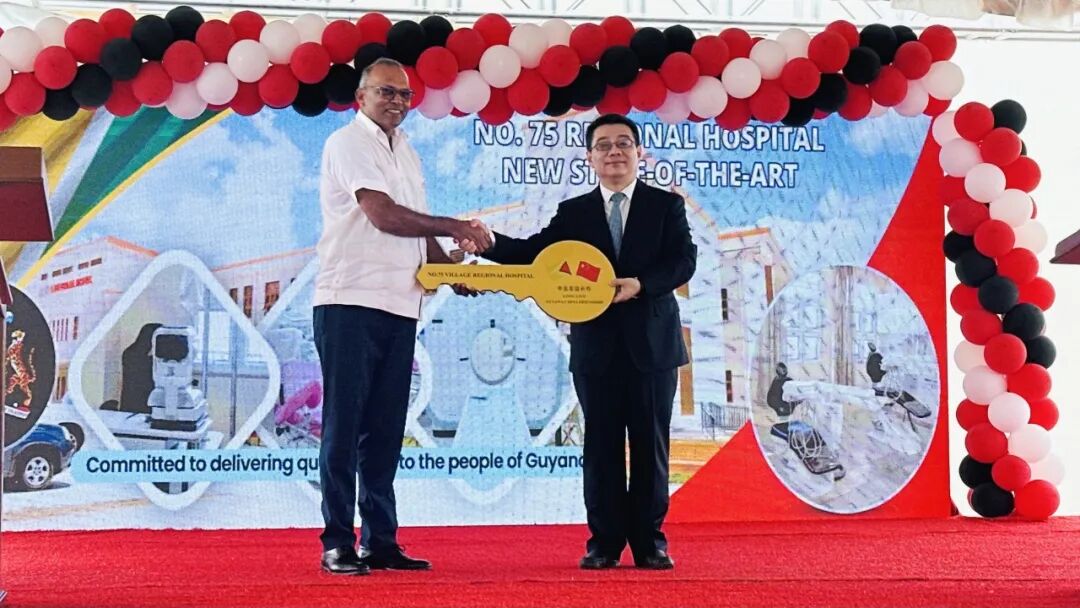 从今年6月期间第一所医院移交,到8月底6所医院全部投入运营,短短三个月内,这一横跨圭亚那多个行政区的医疗保障网络,已累计接诊超2.5万名患者、接生220余名新生儿、开展140余台手术,用 “中国速度” 与 “中国质量” 绘就中圭共建 “健康丝绸之路” 的美丽图景。